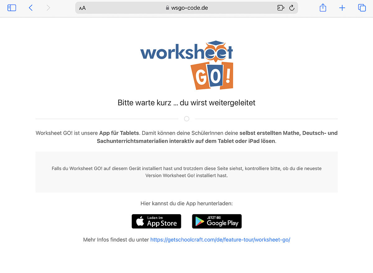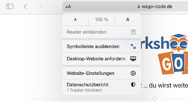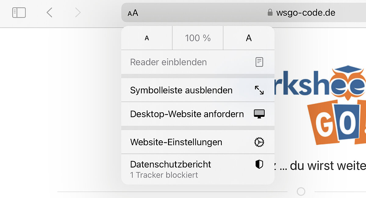 Wenn Du nicht automatisch zum WorksheetCrafter geleitet werden, dann ist es nötig, am Tablet noch eine Einstellung vorzunehmen. Klicke in der Adressleiste des Browsers Safari auf das Symbol mit AA.